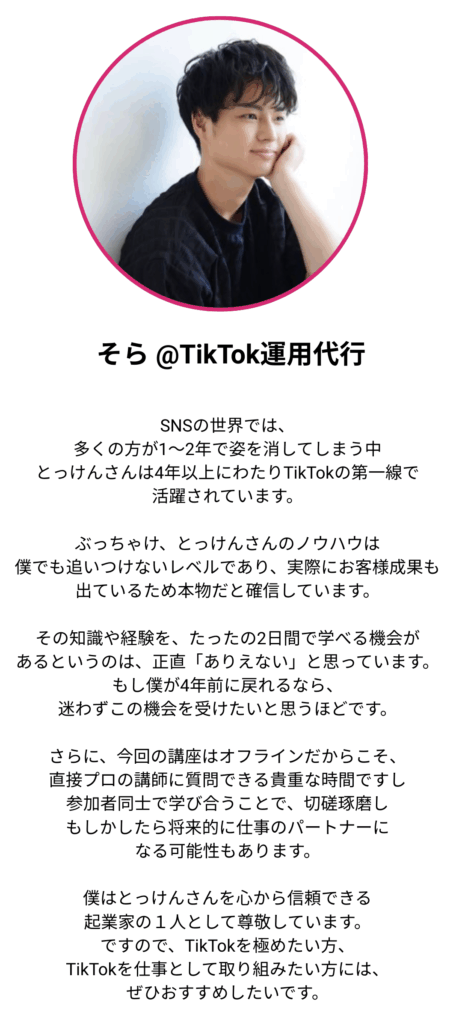 A1. はい、ほとんどの参加者がTikTok未経験からのスタートです。SNS運用に自信がない方でも、初歩から順を追って進められる設計になっています。